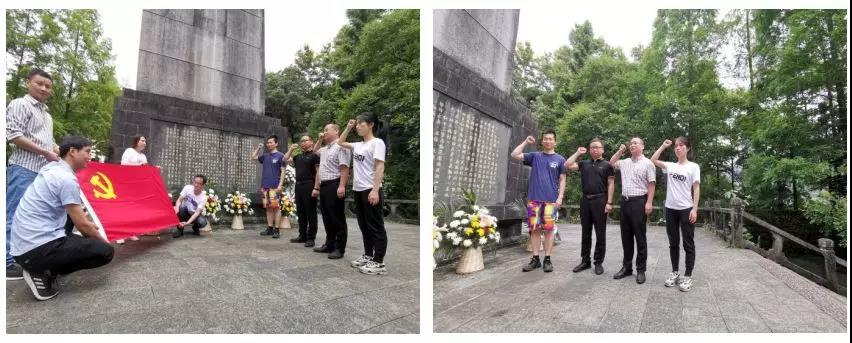 (黨員們紅十三軍烈士紀(jì)念碑前重溫入黨誓詞)