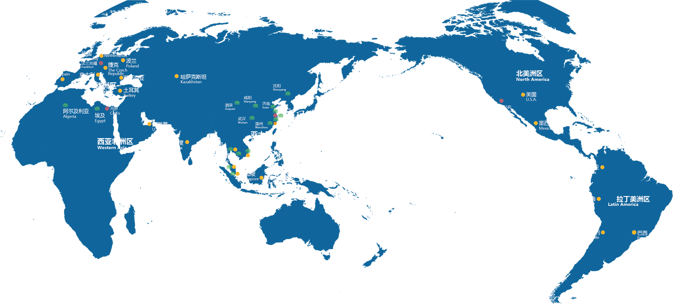 16制造基地:中國(guó)(溫州、上海、酒泉、嘉興、鹽城、咸陽(yáng)、武漢、沈陽(yáng)、濟(jì)南)泰國(guó)、新加坡、越南、馬來(lái)西亞、埃及、柬埔寨、阿爾及利亞