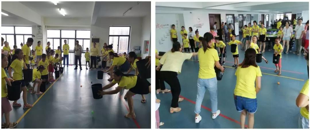 隨后,活動在一場歡快的“兔子舞”中拉開了序幕,本次活動設(shè)置了 “過河拆橋”、“無敵風(fēng)火輪”、“投籃高手”等系列趣味小游戲。在活動中,家長和孩子們密切配合,整個現(xiàn)場處處洋溢著家長和孩子們的歡聲笑語,全員為孩子們加油喝彩,助威鼓勁,活動中最別具一格的游戲是“無敵風(fēng)火輪”,由于擋住了前方視線,孩子要有基本的方向意識,游戲有一定的難度,在旁觀看的爸爸媽媽們即是激動又是緊張,在爸爸媽媽們的幫助和指導(dǎo)下孩子們順利完成游戲任務(wù),最后家長們也積極興奮的PK挑戰(zhàn),體驗孩子們的樂趣、童真。